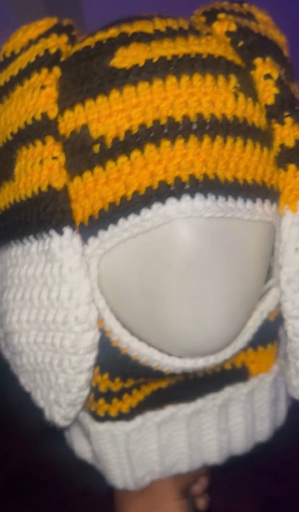 Stay warm, stylish, and game-day ready with this uniquely crafted crochet balaclava. Designed with bold black, gold, and white striping, this cozy headpiece brings maximum warmth and Pittsburgh pride all in one.