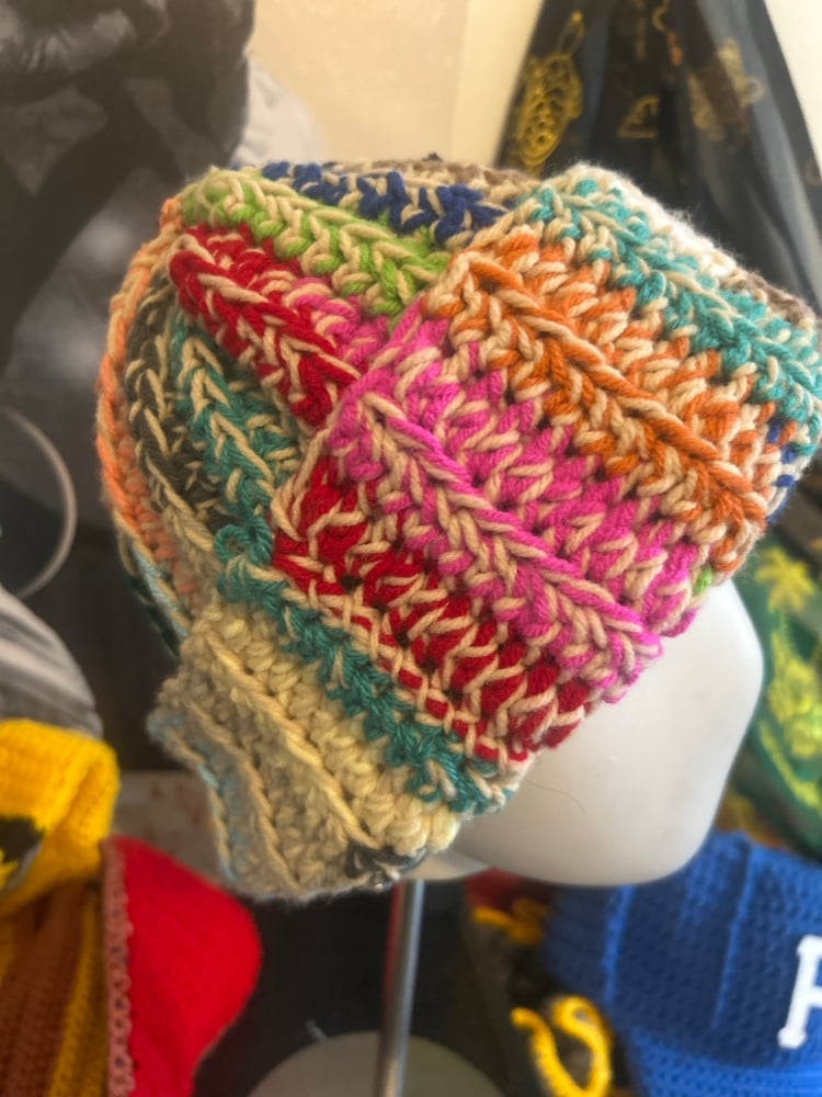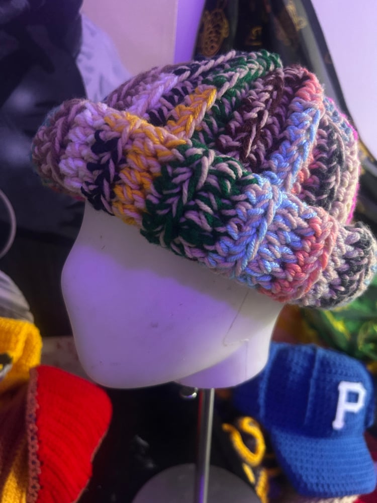 Add a pop of personality to your cold-weather look with this one-of-a-kind, handmade crochet beanie. Crafted with a vibrant mix of colors and textured stitching, this beanie blends comfort, warmth, and artistic flair. Each stitch is carefully worked to create a cozy, snug fit while showcasing a bold, eye-catching pattern that makes every piece truly unique.